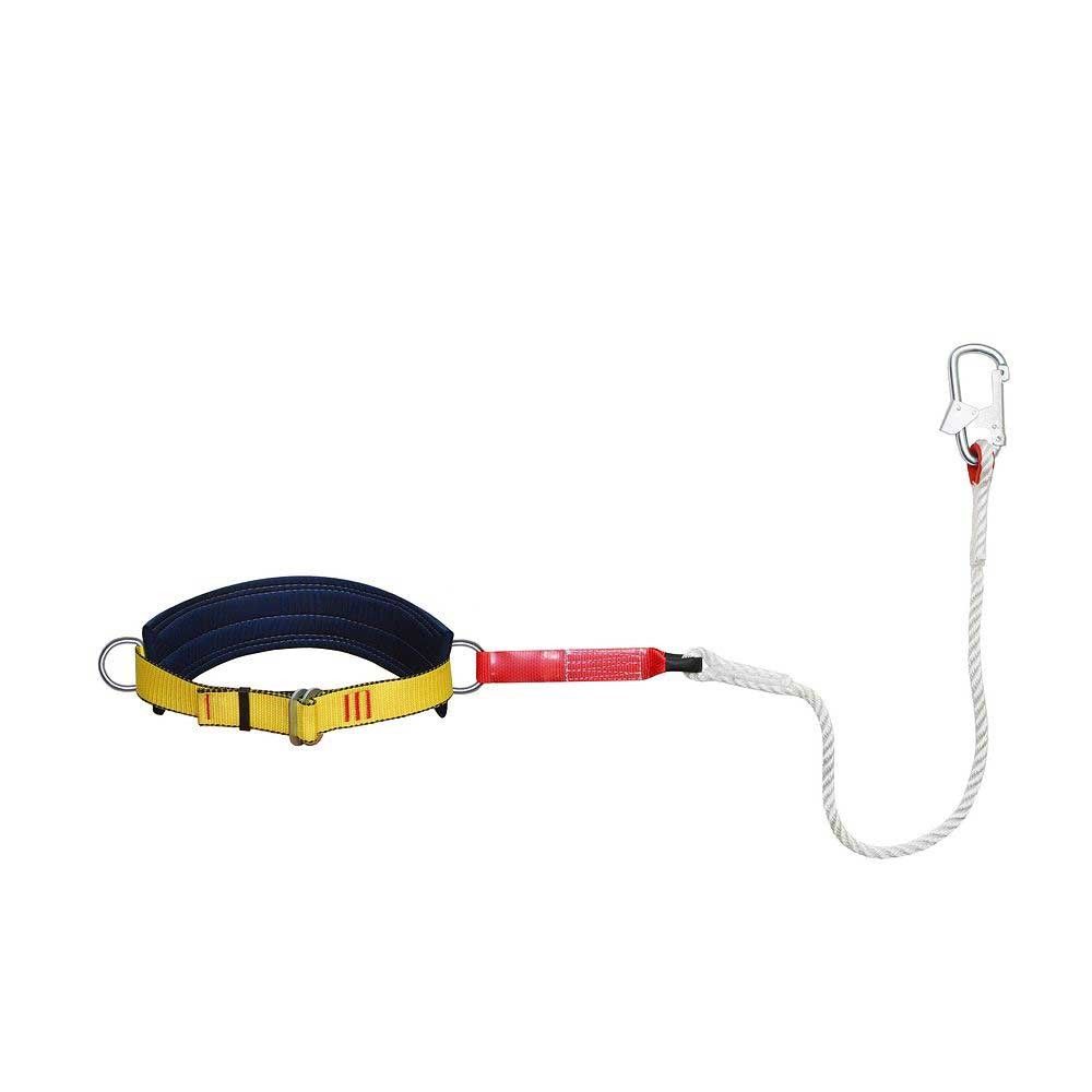 Качественное средство страховки, применяемое во время проведения различных работ на высоких строительных объектах, в глубоких шахтах и везде, где существует риск падения. Включает прочный ремень с застежкой (позволяет быстро регулировать длину пояса под конкретный размер), широкую ремневую подкладку, удобные наплечные лямки, несколько крепежных D-образных колец, стропу, изготовленную из полиамидного каната и оснащенную прочным карабином. Благодаря грамотно продуманной конструкции пояс весьма удобен в использовании и обеспечивает человеку на любой высоте надлежащую защиту.